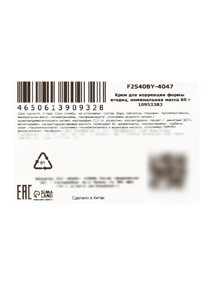 Технические характеристики Крем для коррекции формы ягодиц SADOER, 60 г