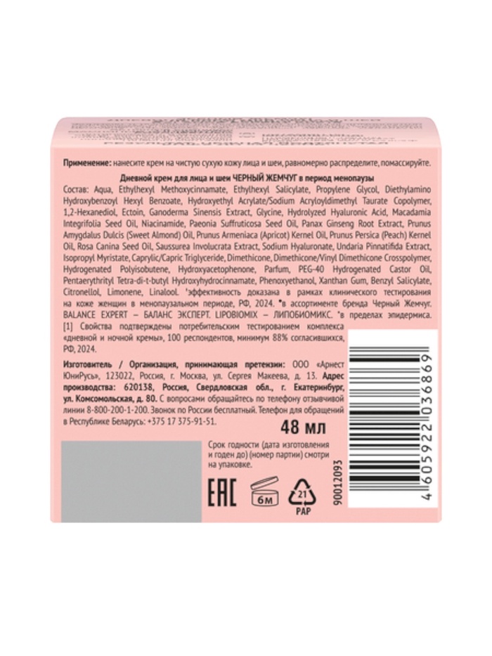 Крем для лица и шеи «Черный жемчуг», дневной, в период менопаузы, 48 мл