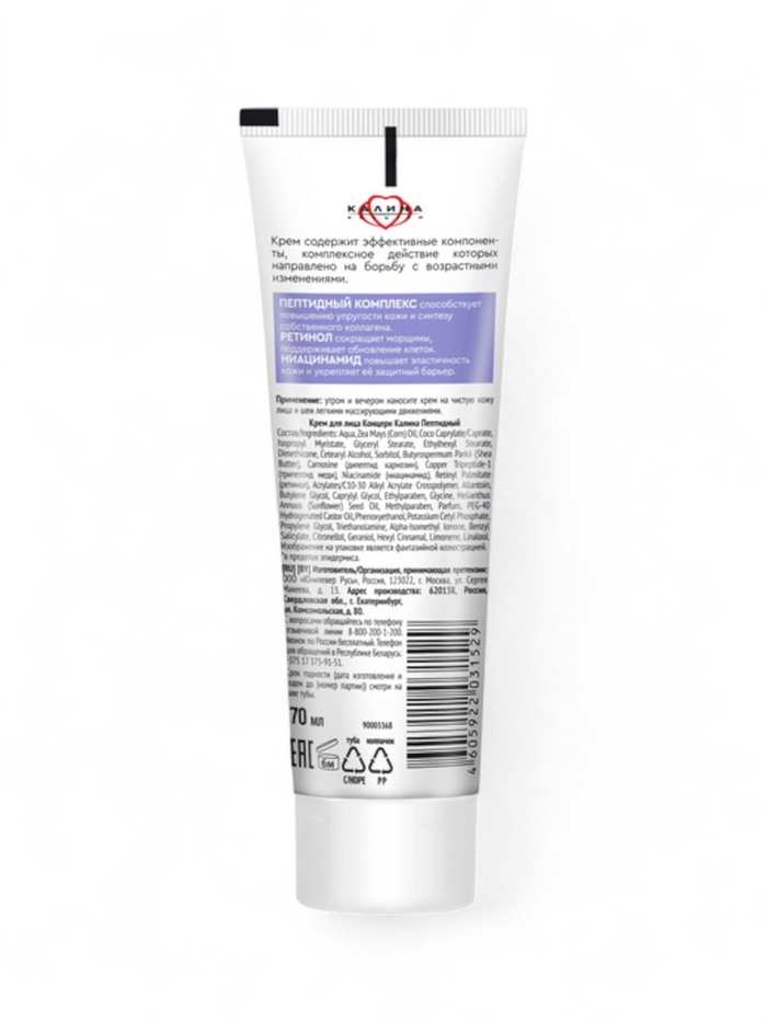 Крем для лица «КАЛИНА» пептидный, с ретинолом и ниацинамидом, 70 мл