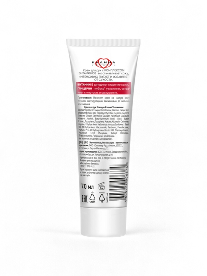 Крем для рук с комплексом витаминов «КАЛИНА» увлажнение, 70 мл