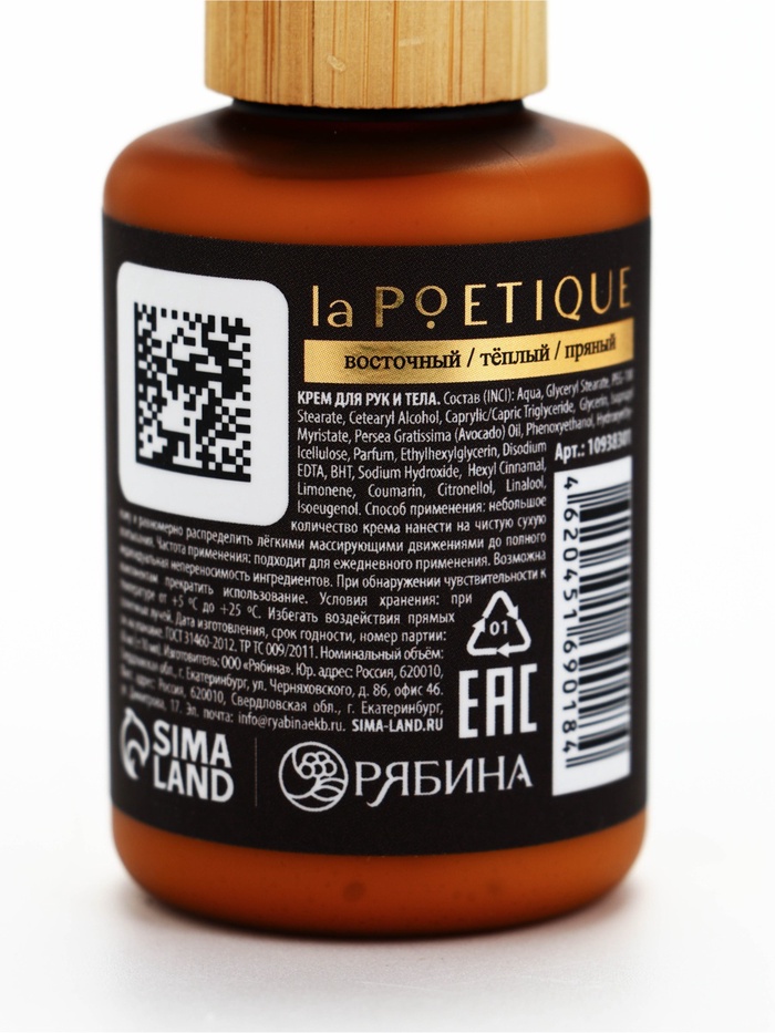 Технические характеристики Крем для рук и тела парфюмированный, аромат Black pepper, 60 мл, laPOETIQUE