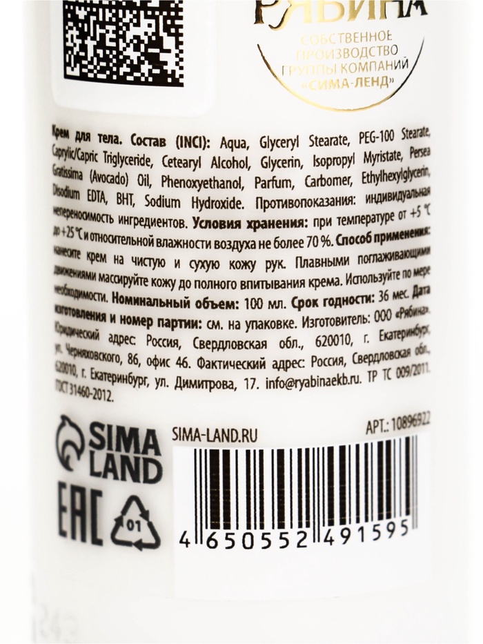 Технические характеристики Крем для тела увлажняющий, 100 мл, цветение сакуры, URAL LAB