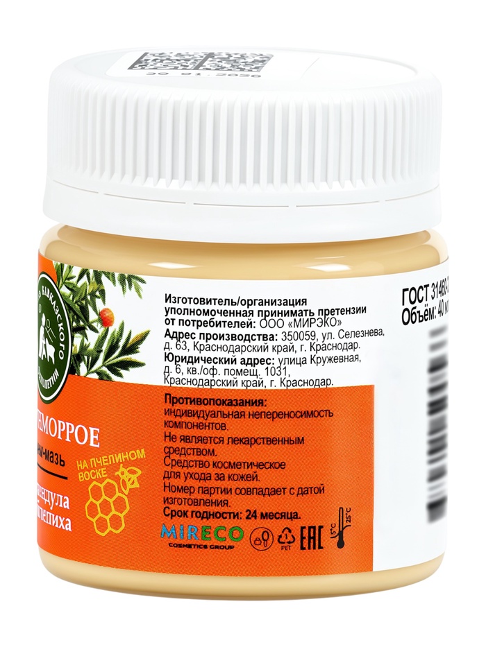 Технические характеристики Крем-мазь при геморрое «Природа кавказского долголетия», пластик, 40 мл