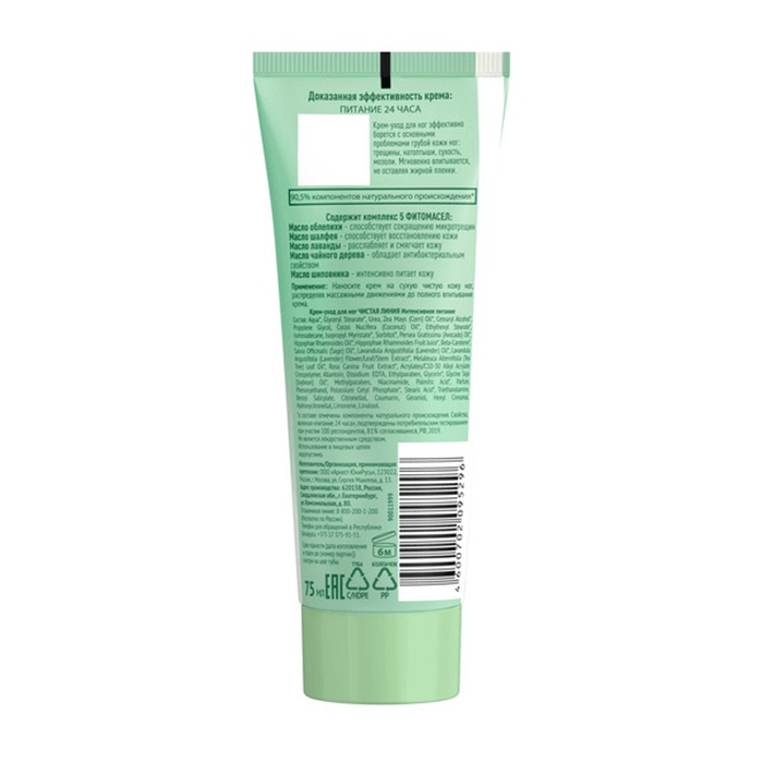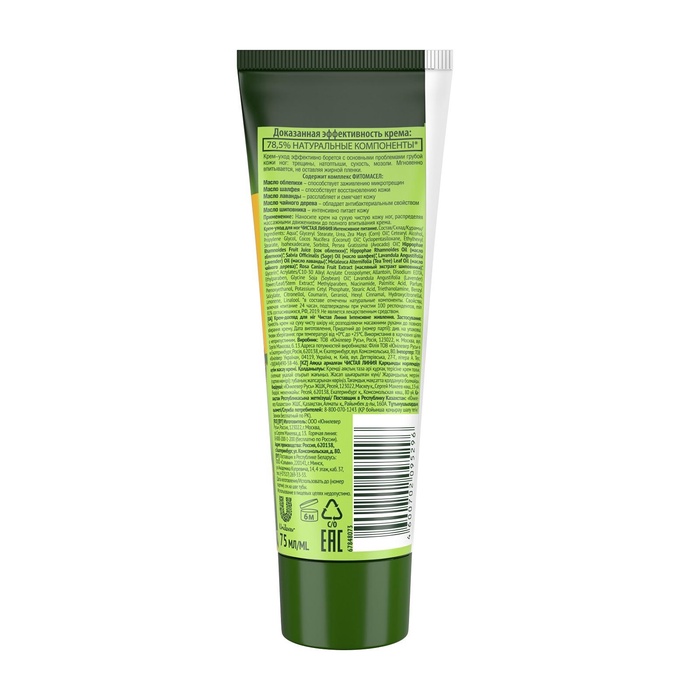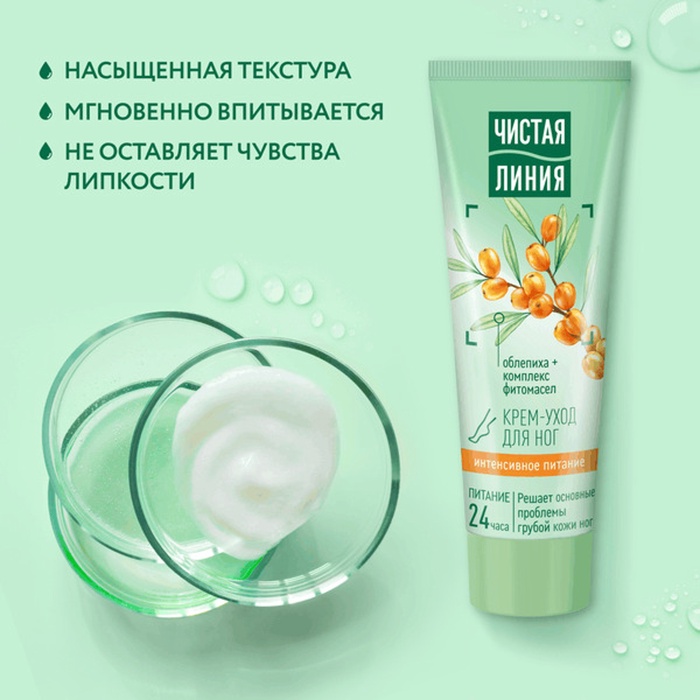 Крем-уход для ног Чистая линия «Интенсивное питание», 75 мл