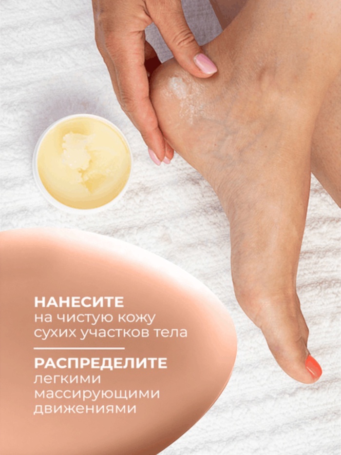 В состав крема для трещин входят витамин Е и комплексы драгоценных масел какао и кокоса, которые обеспечивают эффективное смягчение, увлажнение и восстановление кожи.