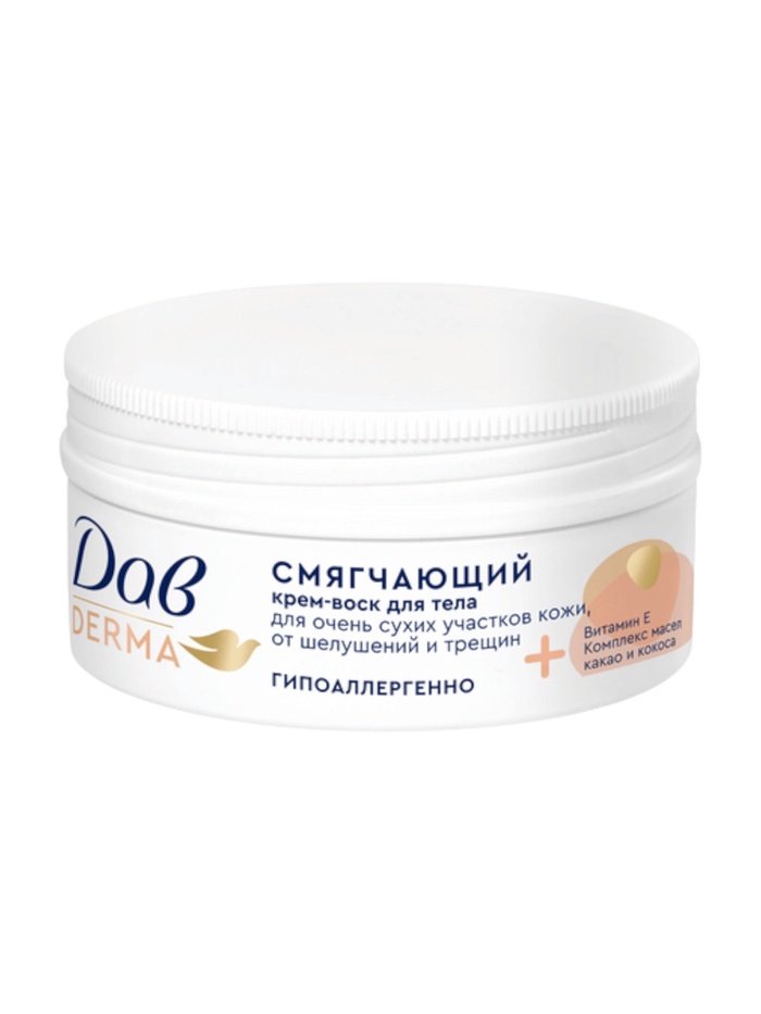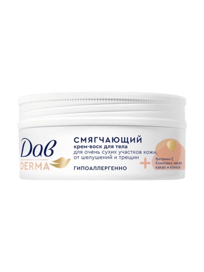 Увлажняющий крем-воск для тела Дав Derma смягчающий— это универсальное средство для ухода за очень сухой кожей. Продукт эффективно справляется с шелушениями и трещинами, восстанавливая красоту кожи.
