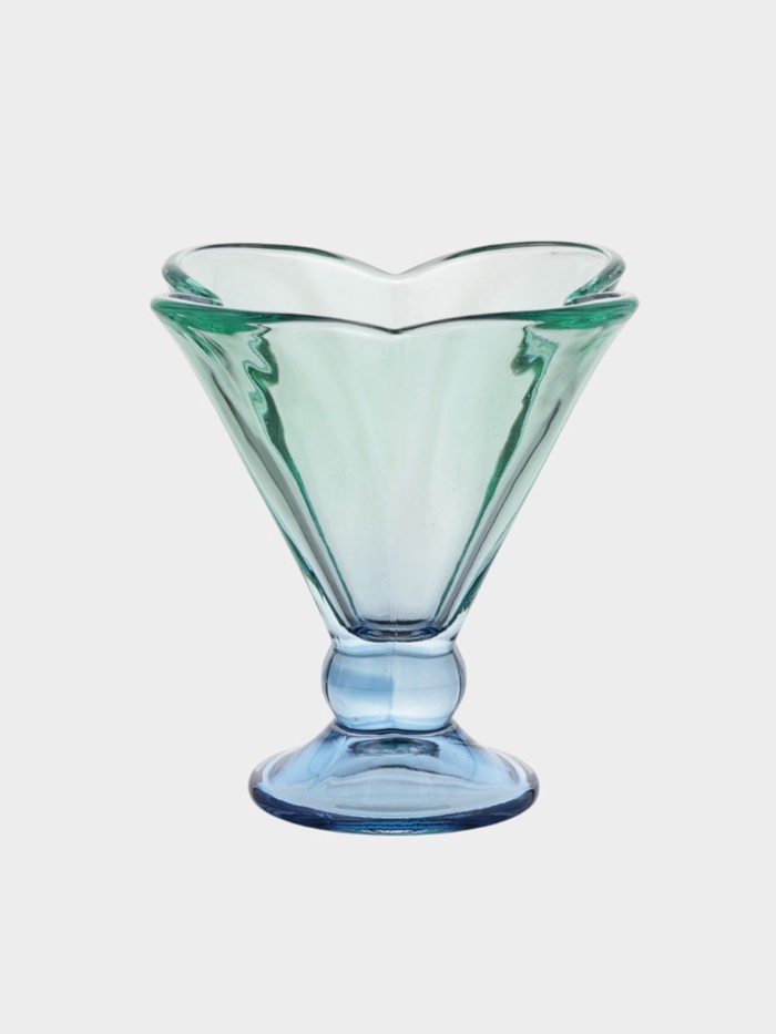 Свежесть в каждой детали! Фигурная стеклянная креманка в голубом и зеленом оттенках для десертов, йогуртов, фруктов или закусок. Ее необычная форма и мягкие цвета создают ощущение легкости, как первый день отпуска.