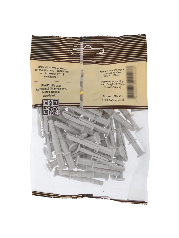 Технические характеристики Крепеж для плинтуса ИзиФикс 6х30мм "Идеал" (50шт. во флоупаке)