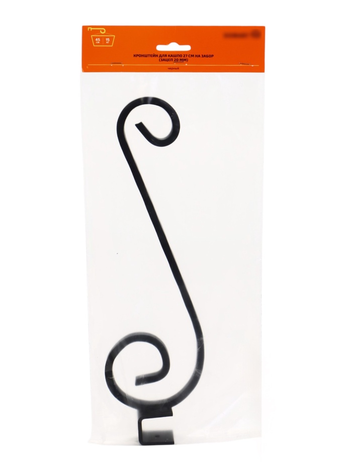 Технические характеристики Кронштейн для кашпо навесной 27 см (забор, перила, козырьки) металл (зацеп 20 мм / 25 мм), черный 10