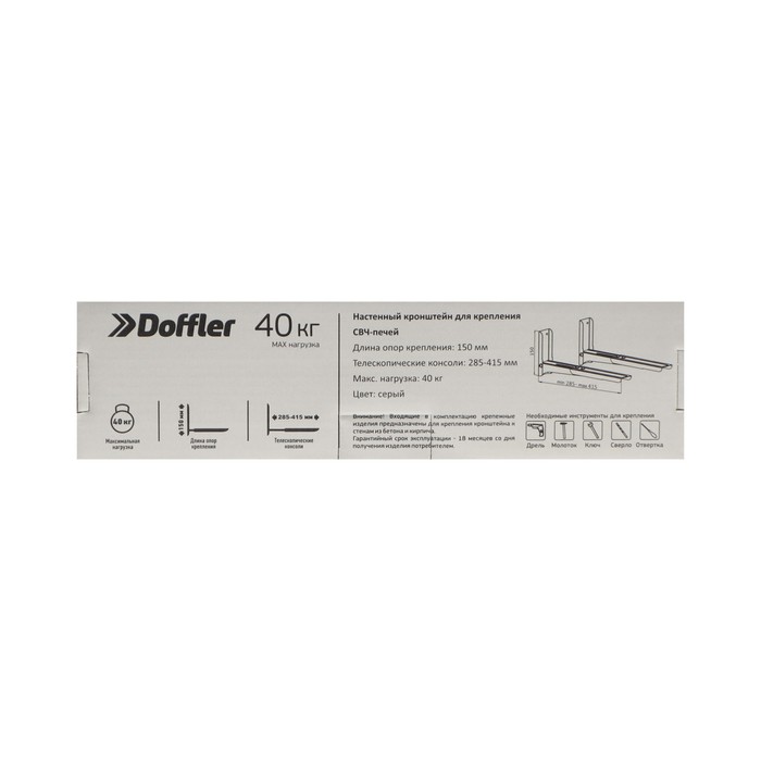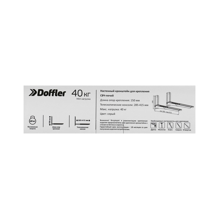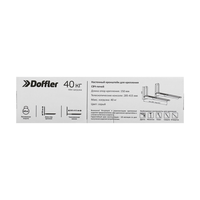 Технические характеристики Кронштейн Doffler MW12S, для микроволновой печи, регулируемый, до 40 кг, 285-415 мм, графит