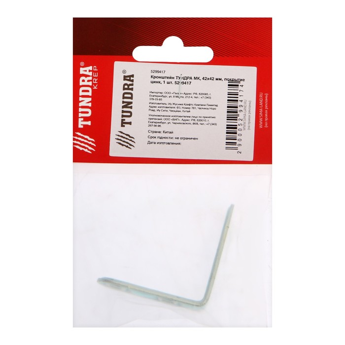 Кронштейн ТУНДРА МК, 42х42 мм, покрытие цинк, 1 шт.