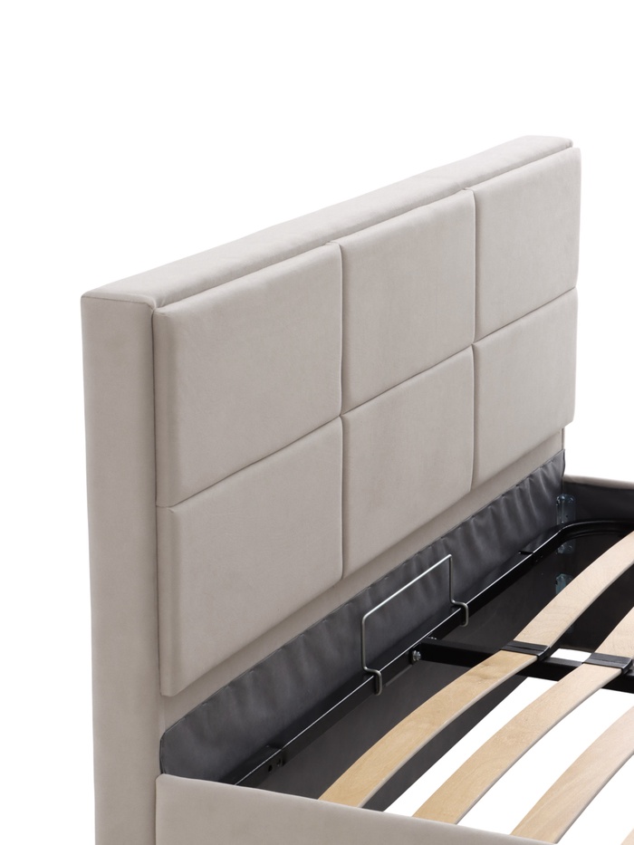 - Подъёмный механизм открывает доступ к просторному ящику для хранения белья и сезонных вещей.