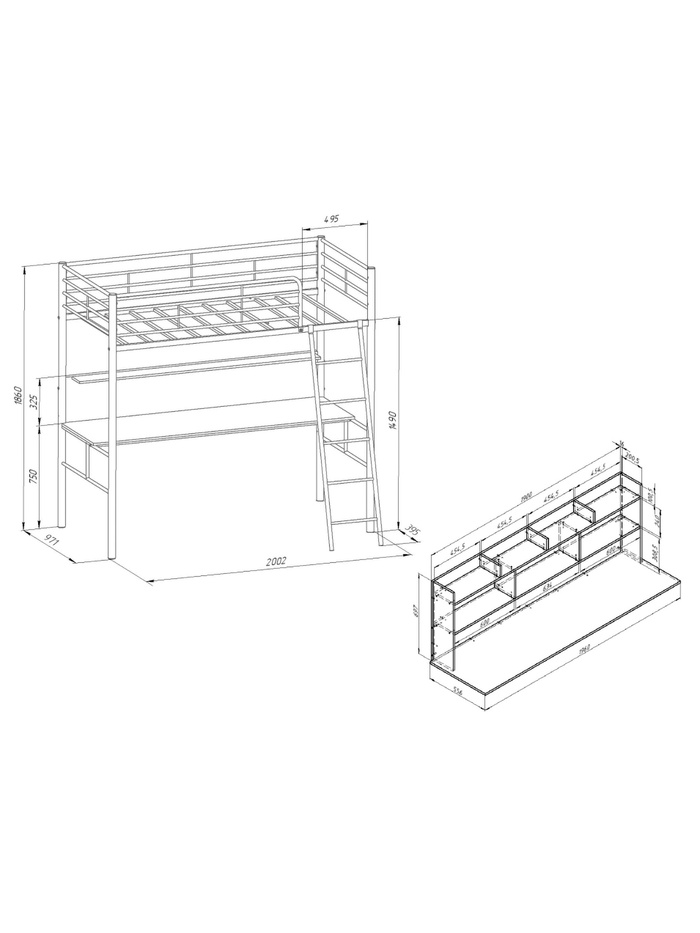 Технические характеристики Кровать-чердак "Севилья 5.02" слоновая кость/ЛДСП ясень шимо светлый