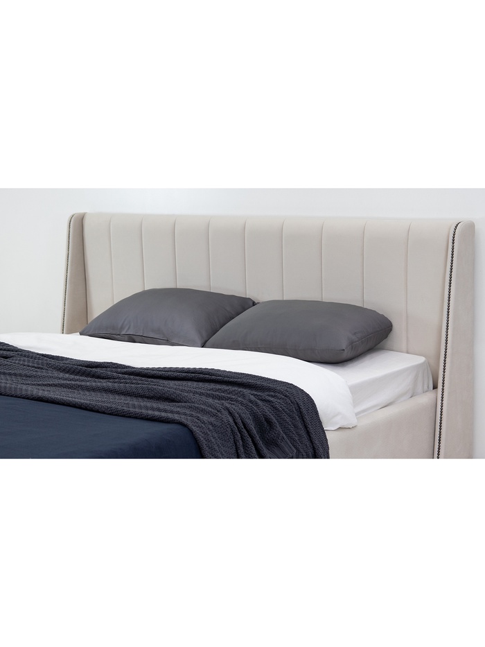 Функциональная и стильная кровать для спальни. Модель «Меллиса» сочетает современный дизайн с практичным подъёмным механизмом для хранения белья. Изголовье с боковыми накладками, декорированными мебельным молдингом – гвоздиками, создаёт ощущение уюта, приватности и комфорта.