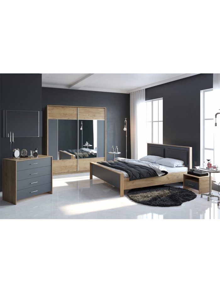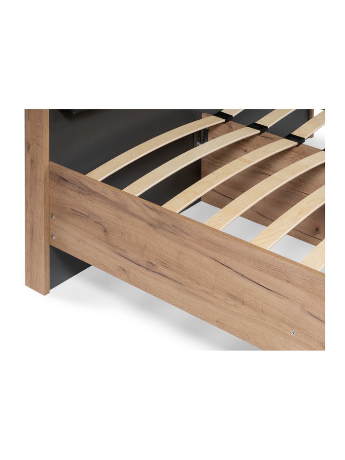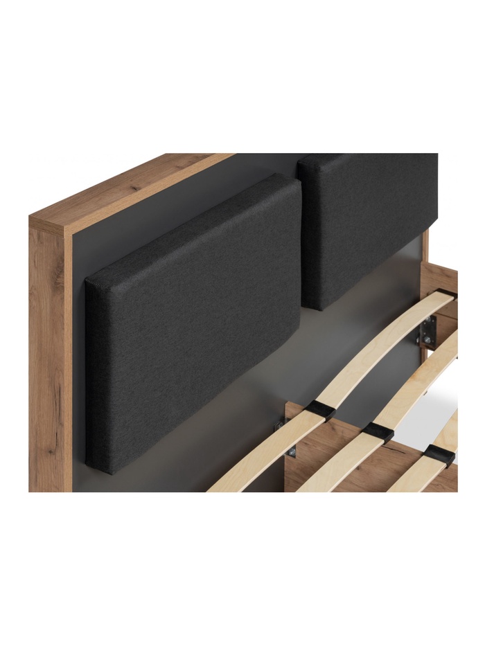 Двуспальная кровать «Тхан» — это гармоничное сочетание теплого оттенка дуб крафт золотой и контрастного антрацита, создающее стильный и современный образ спальни. Лаконичные формы и выразительное изголовье делают модель эффектным акцентом интерьера в стиле модерн или лофт.