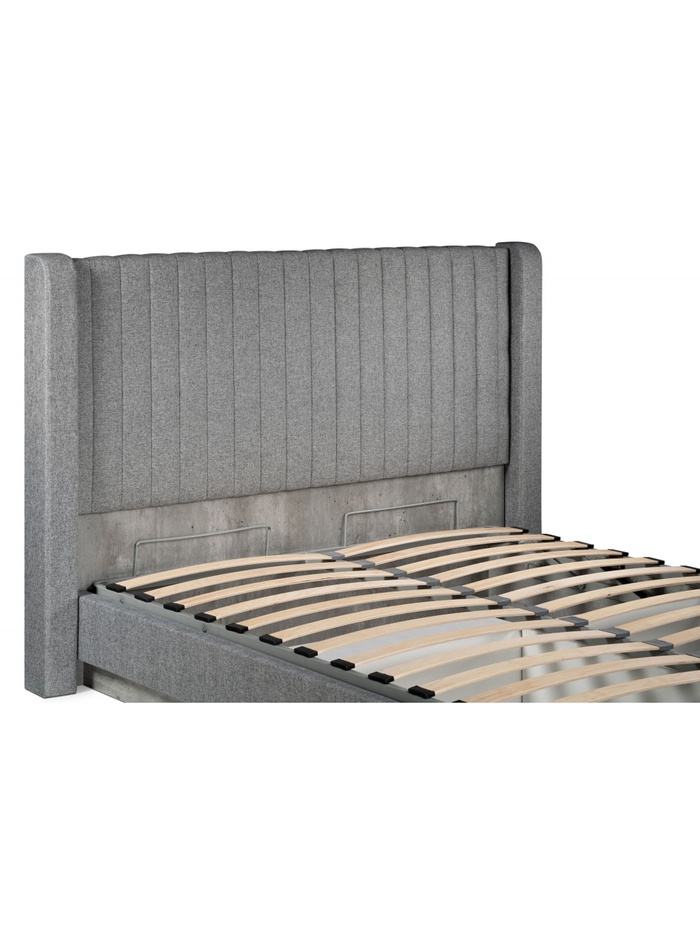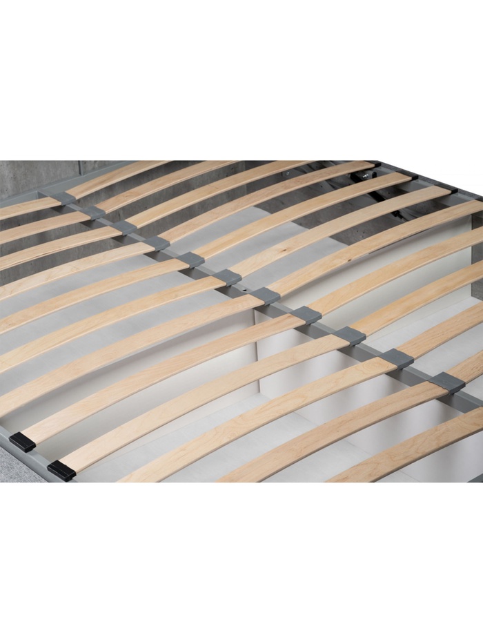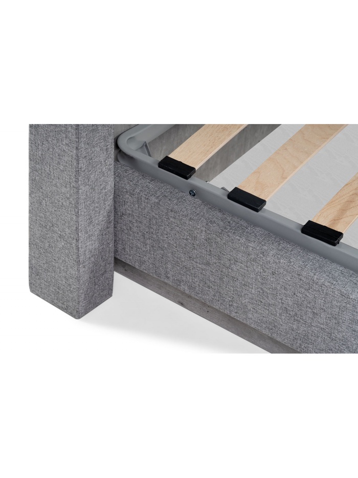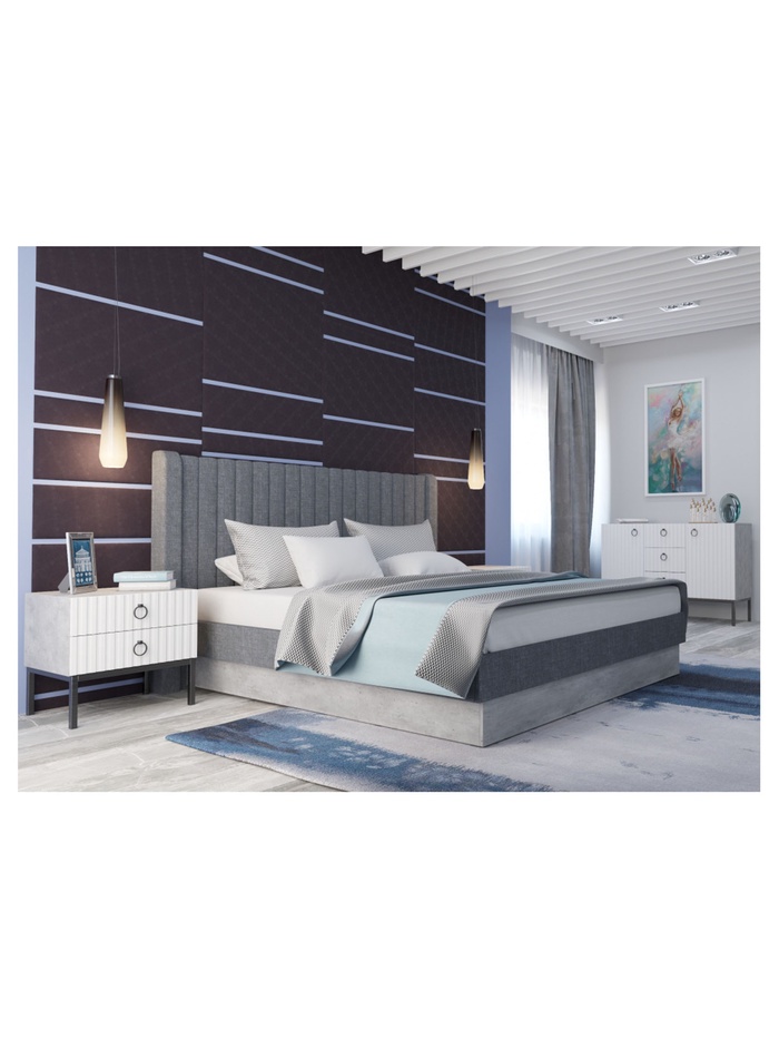 Элегантное сочетание оттенков метрополитан грей и белого матового покрытия делает кровать универсальной для современных интерьеров. Прочный каркас из ЛДСП гарантирует долговечность конструкции, а ортопедическое основание с деревянными ламелями поддерживает правильное положение тела во время сна.