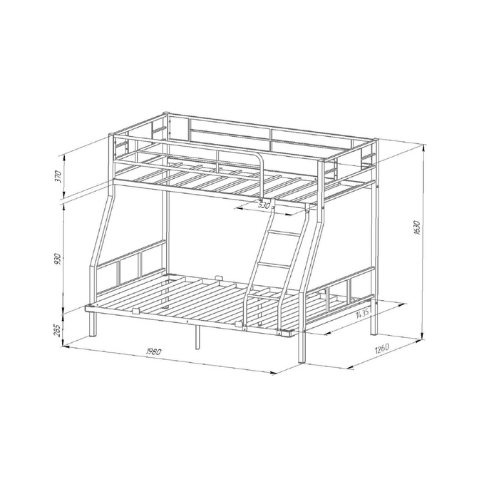 Технические характеристики Кровать двухярусная "Гранада -1 140" серый/ЛДСП дуб молочный