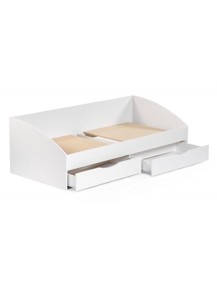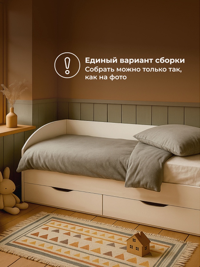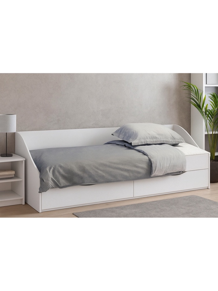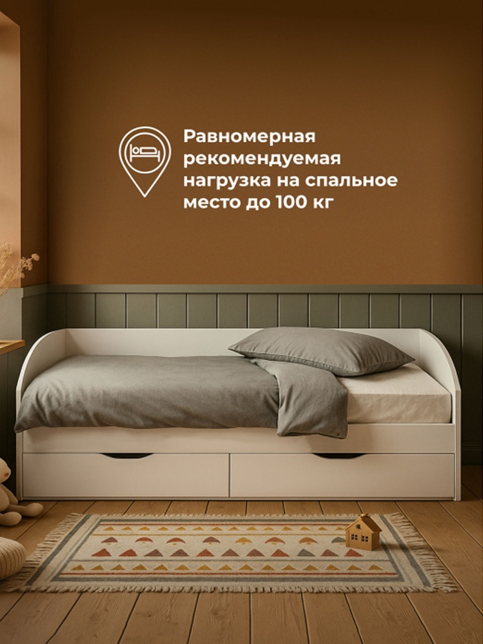 - Встроенное хранение: два выдвижных ящика позволяют рационально использовать пространство под кроватью.