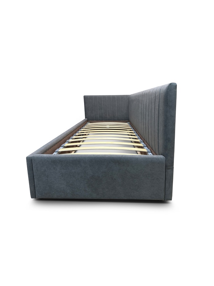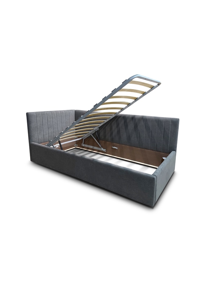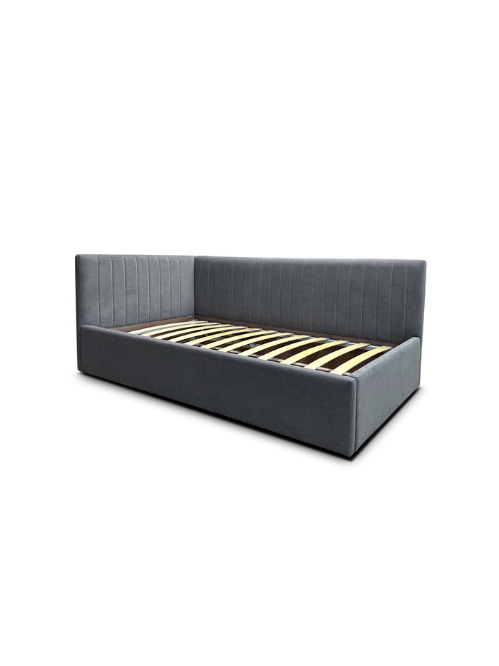 Кровать подростковая левая "Фрейм Страйп" 900×2000 с п/м, ткань вивальди 34 графит