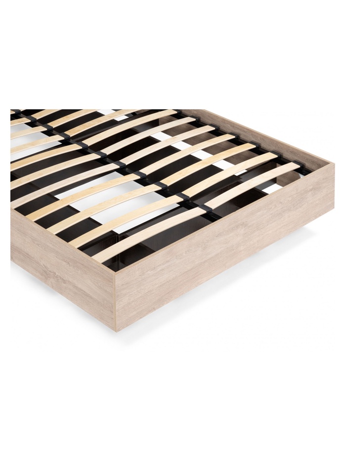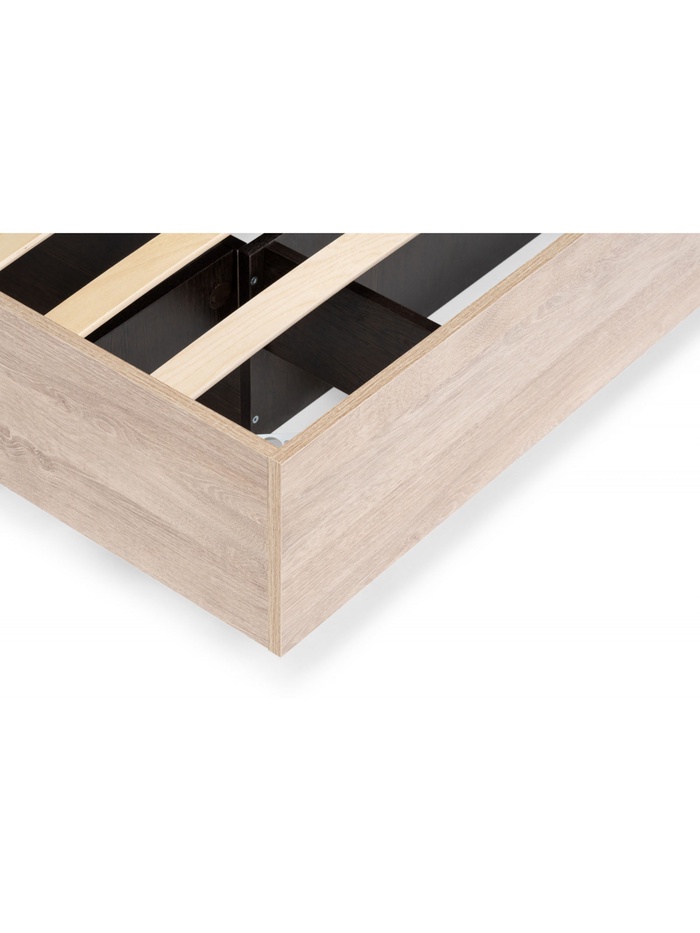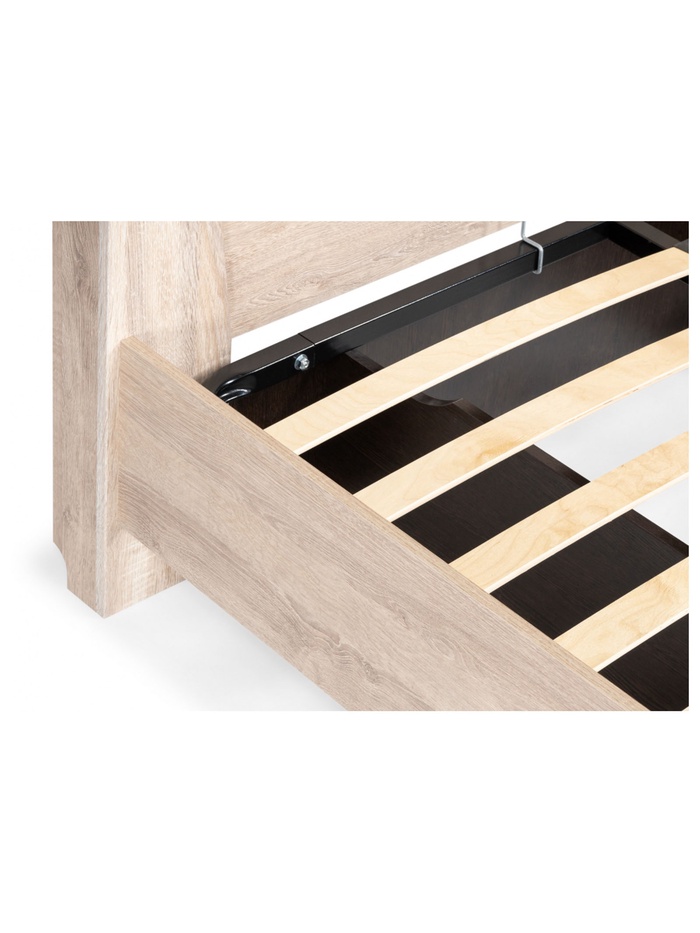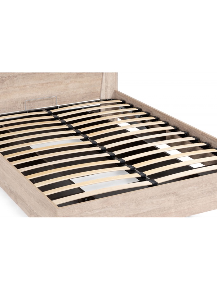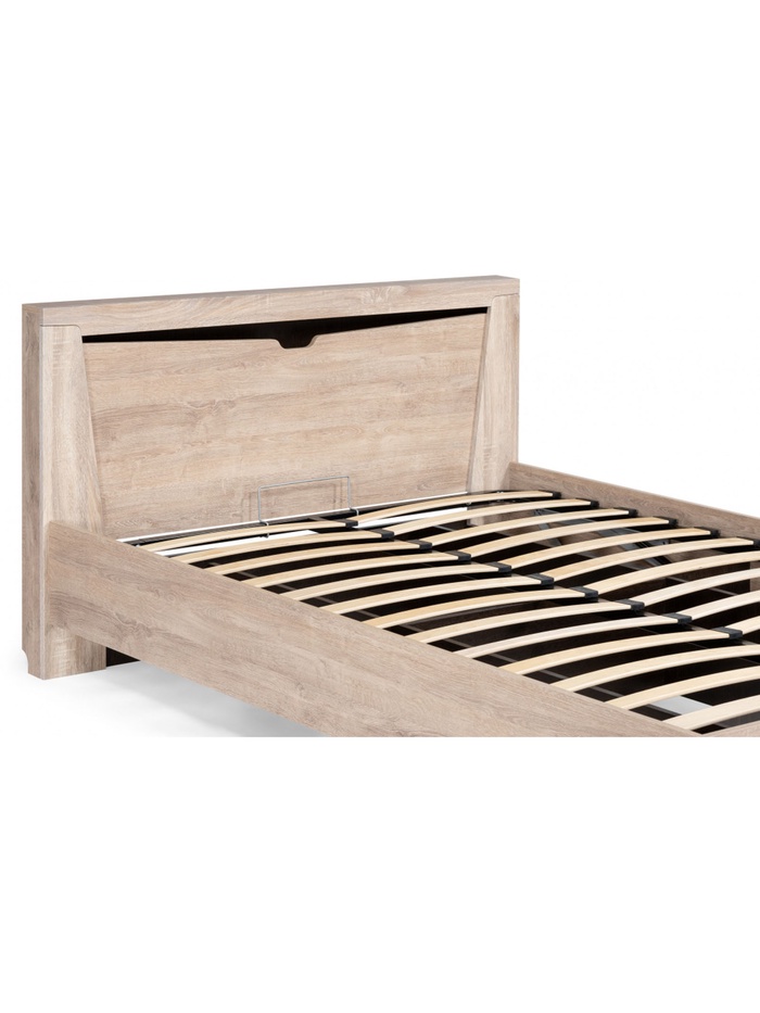 Спальное место размером 140×200 см обеспечивает удобство для одного человека или пары. Ортопедическое основание с деревянными ламелями способствует правильной поддержке матраса и комфортному отдыху. Подъемный механизм (ПМ) открывает доступ к вместительному внутреннему пространству для хранения постельных принадлежностей и других вещей.