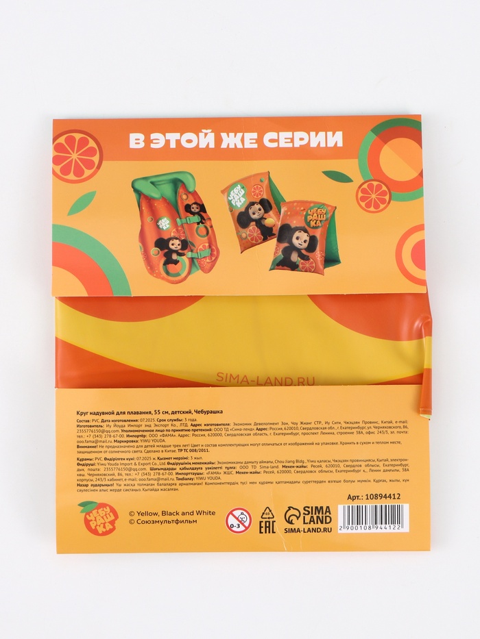 Технические характеристики Круг надувной для плавания детский 55 см, Чебурашка