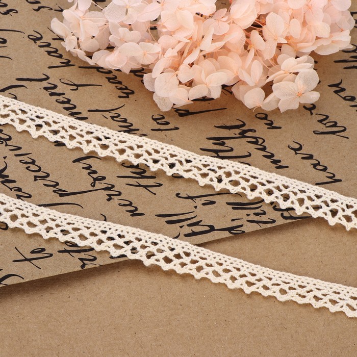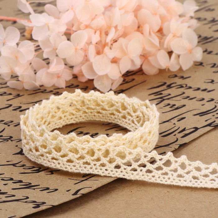 Кружево вязаное, 15 мм × 15 ± 1 м, цвет бежевый