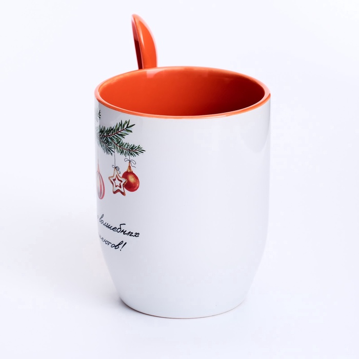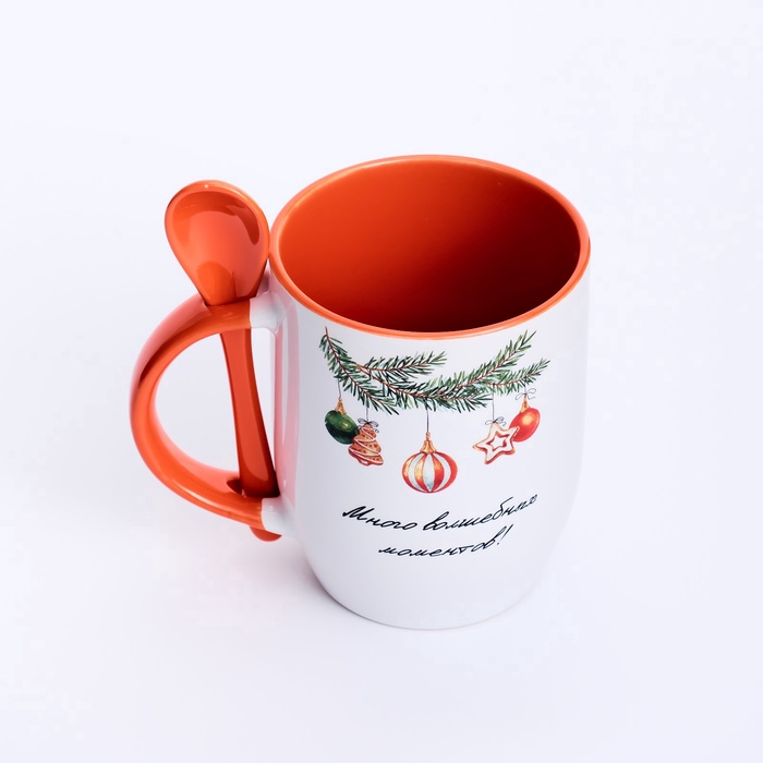 Кружка с ложкой керамическая, новогодняя «Волшебных моментов», 350 мл