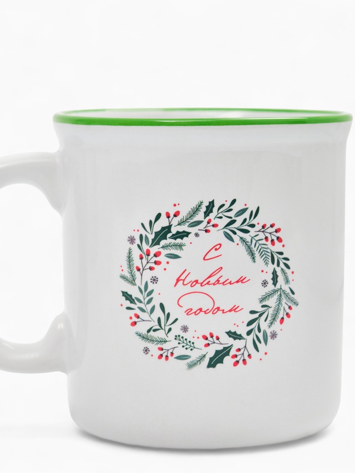 Кружка чайная новогодняя «Новогодний венок», 340 мл