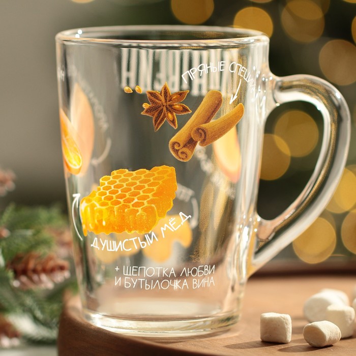 Кружка стеклянная новогодняя Дорого внимание «Глинтвейн», 300 мл