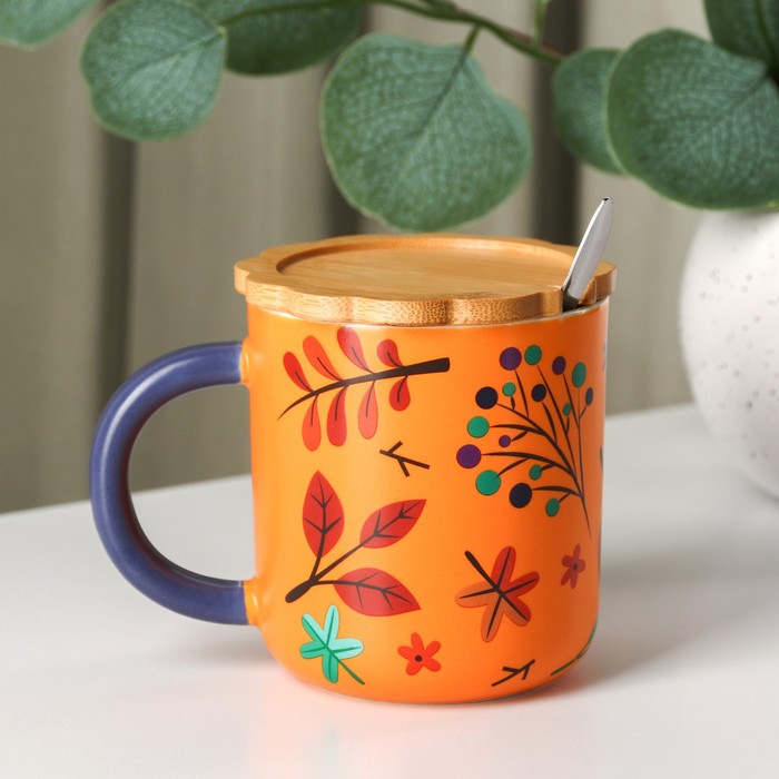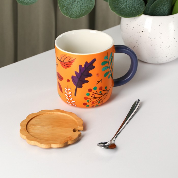 Кружка керамическая с ложкой «Гербарий», 350 мл