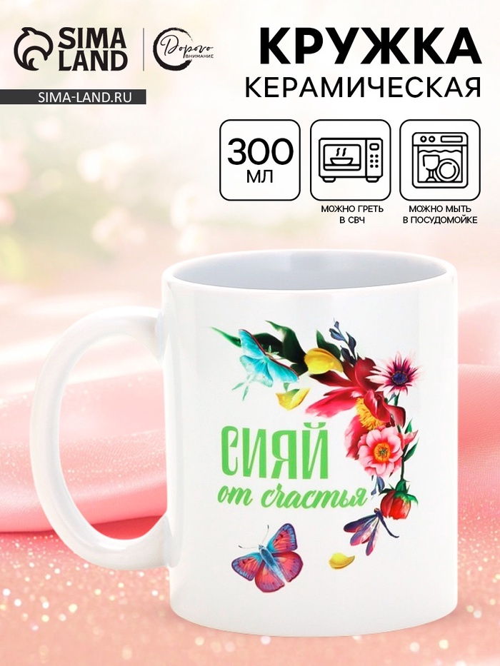 Технические характеристики Кружка керамическая «Сияй от счастья», 300 мл