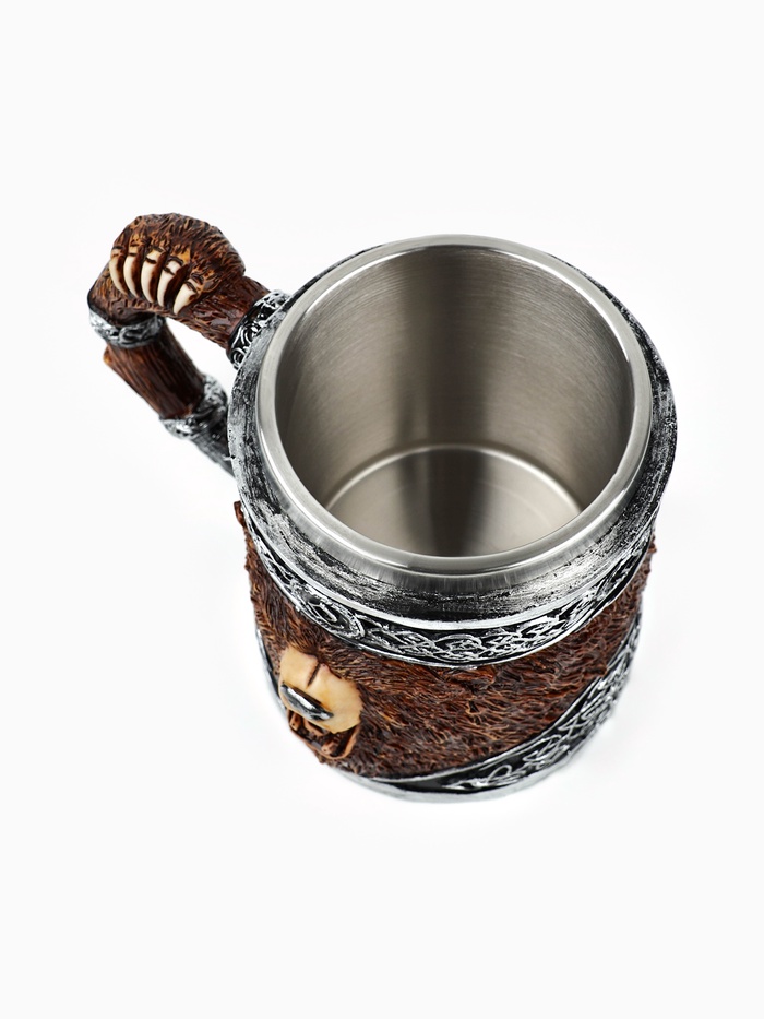 Эксклюзивная кружка из нержавеющей стали с художественным барельефом медведя из полистоуна. Сочетание металла и изысканного декора создает впечатляющий эстетический эффект, превращая обычную посуду в настоящий арт-объект.