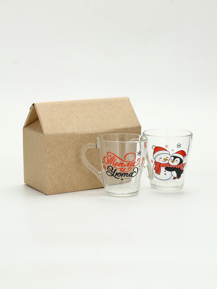 Набор кружек «Персонажи» — это тихий дуэт зимнего уюта, заключённый в прозрачное стекло. Две кружки — два героя одного вечера: на первой — пингвин, обнимающий снеговика, будто знает, что даже из снега можно сложить нечто тёплое; на второй — только фраза: ”Тепла и уюта”, без восклицаний, без пафоса, как шёпот перед сном. Никаких символов года, никаких дат — только момент, в котором хватает места для смеха, тишины и пары над какао.