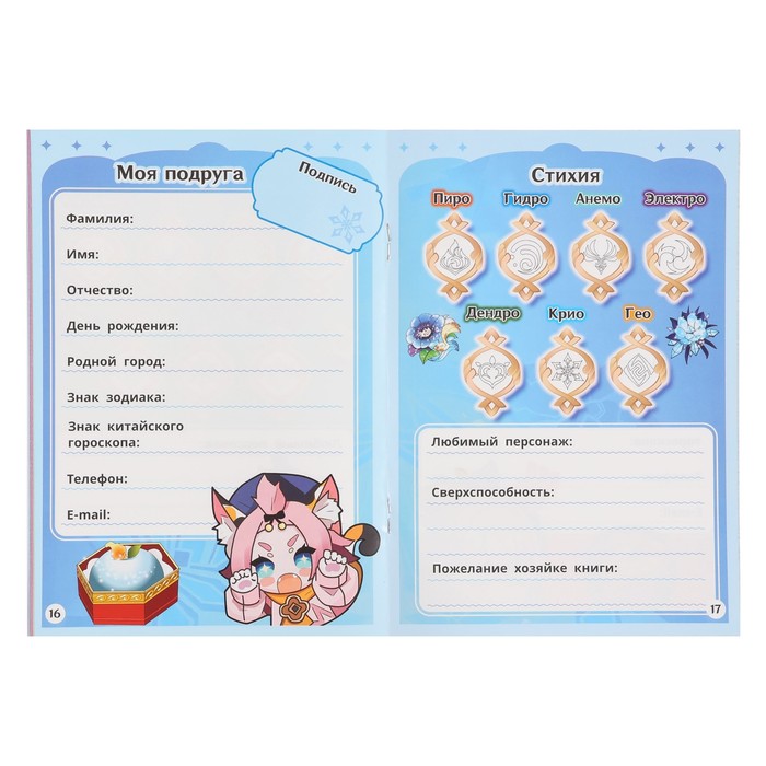 - На ярких страницах девчонка найдет подробные анкеты, которые она сможет заполнить вместе с подружками.