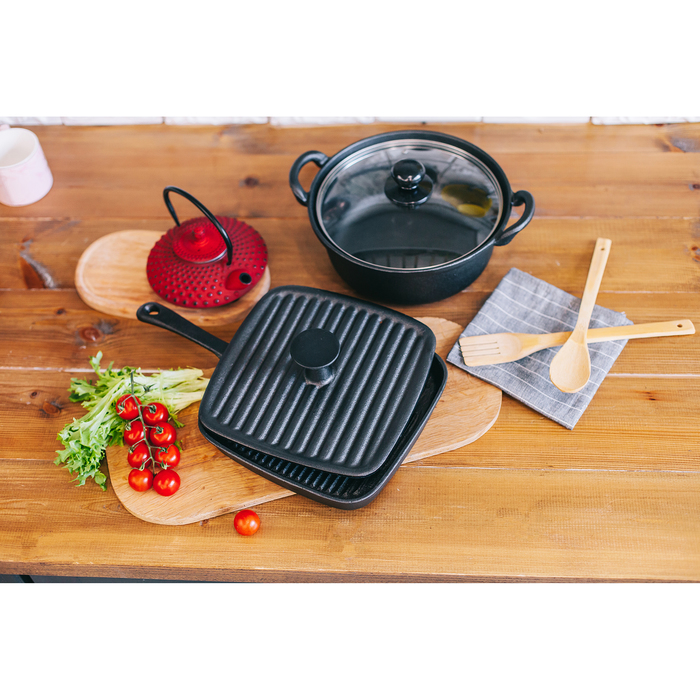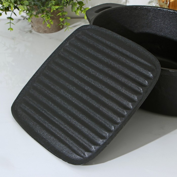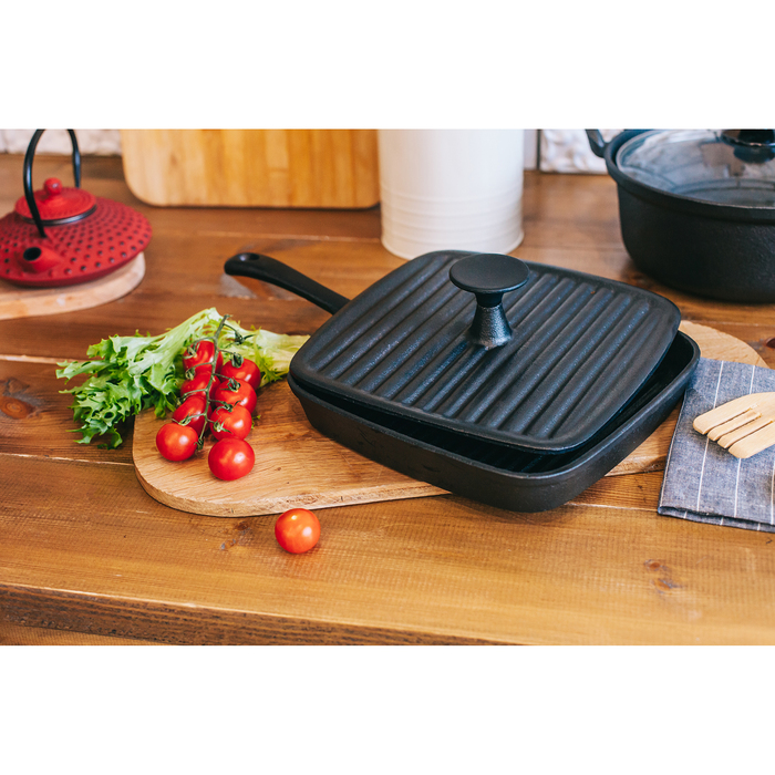 Крышка-пресс для гриля Доляна «Квадрат», чугун, 23×23 см, чёрная