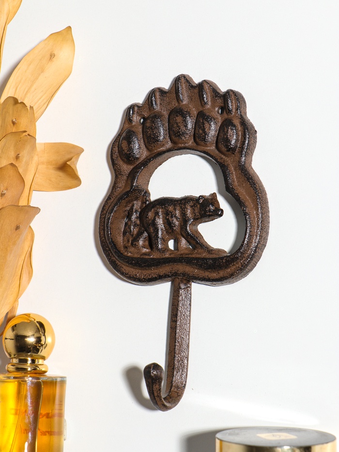Крючок декоративный чугун "След медведя и медведь" 18,5х10,5х3,5 см