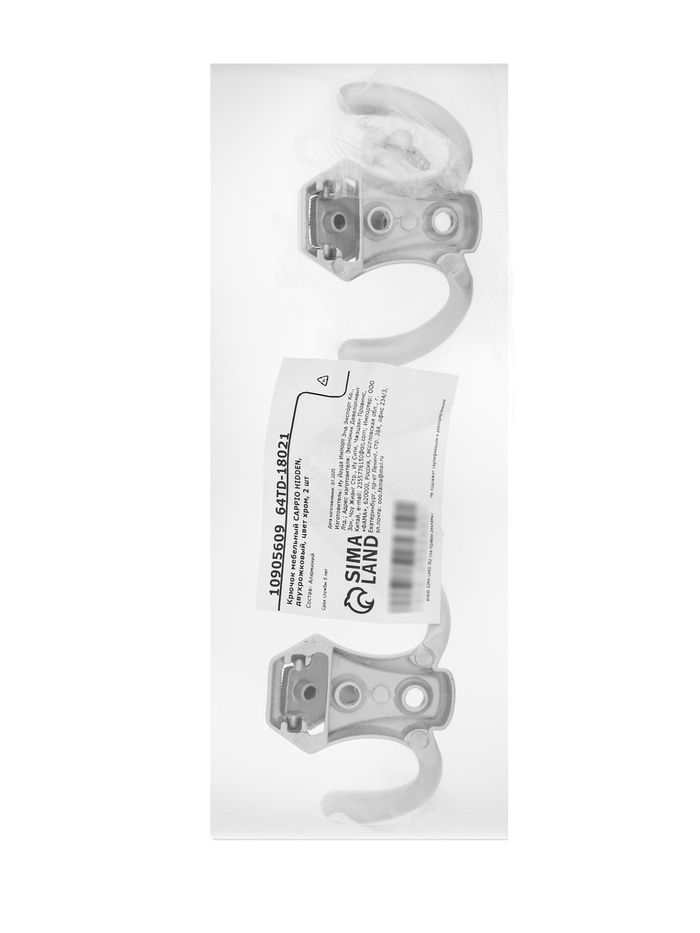 Технические характеристики Крючок мебельный CAPPIO HIDDEN, двухрожковый, цвет хром, 2 шт.
