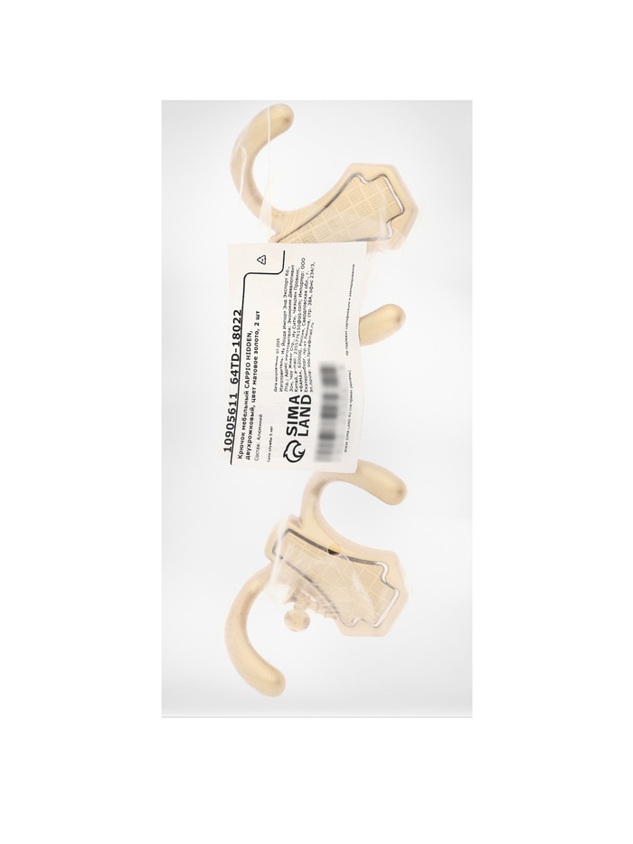 Крючок мебельный CAPPIO HIDDEN, двухрожковый, цвет матовое золото, 2 шт.