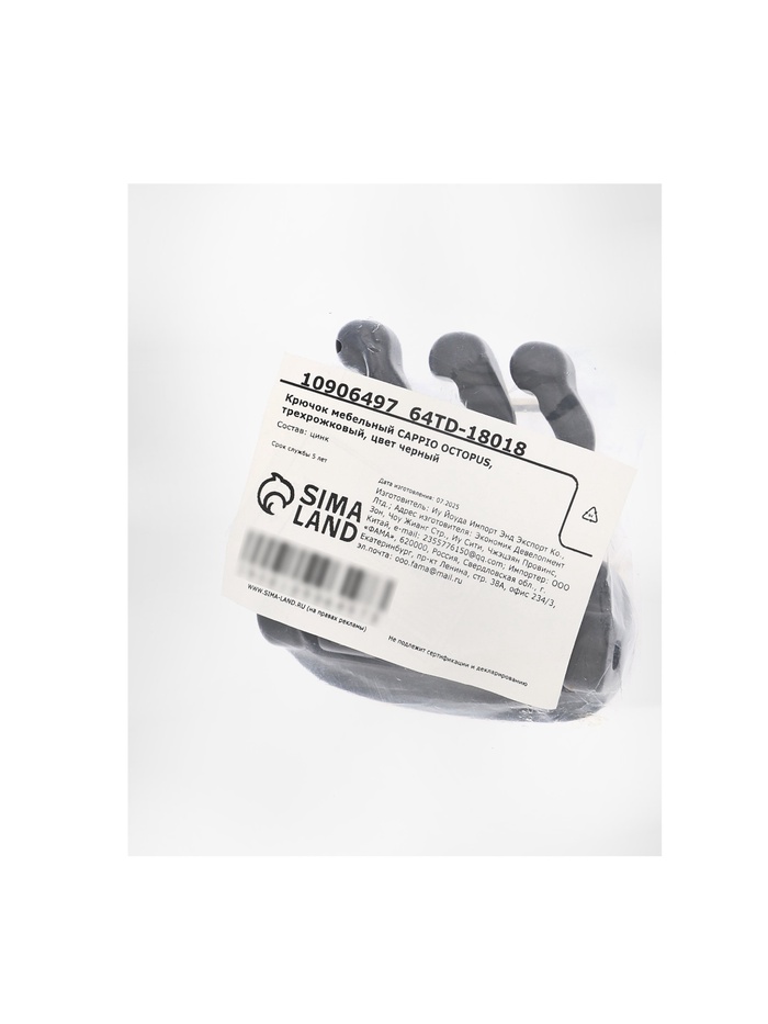 Технические характеристики Крючок мебельный CAPPIO OCTOPUS, трехрожковый, черный