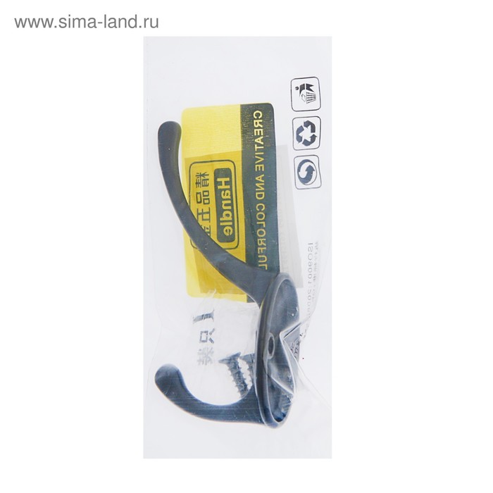 Технические характеристики Крючок мебельный ТУНДРА TKD002 LIGHT, двухрожковый, черный, 4 шт.