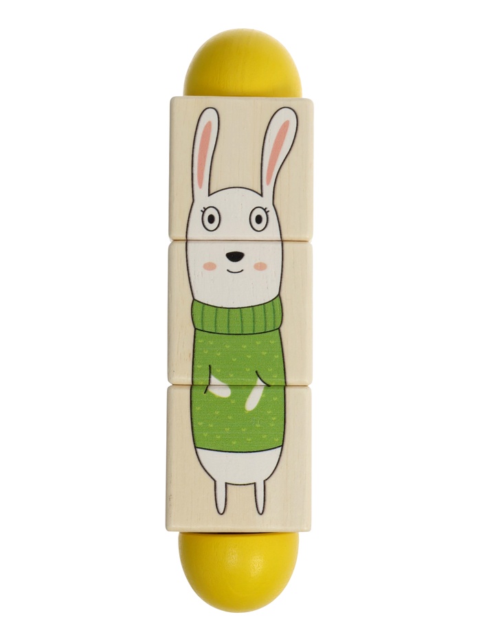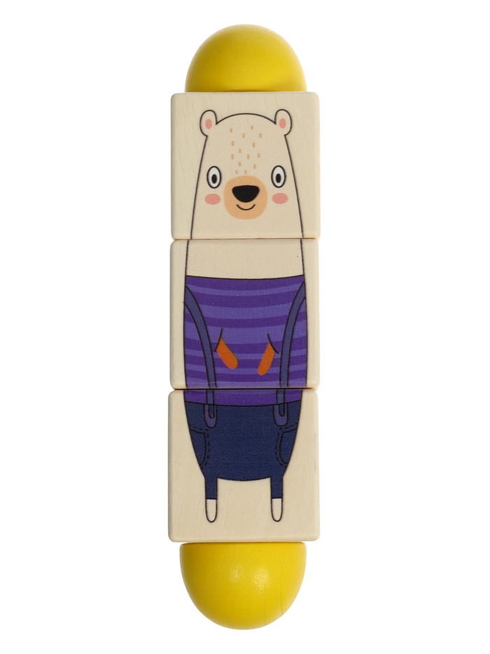 - Наглядная игра с образами: Ребёнок крутит кубики на оси и подбирает части рисунка, создавая цельный образ животного. Это понятный и спокойный формат игры, который помогает сосредоточиться и лучше замечать детали.