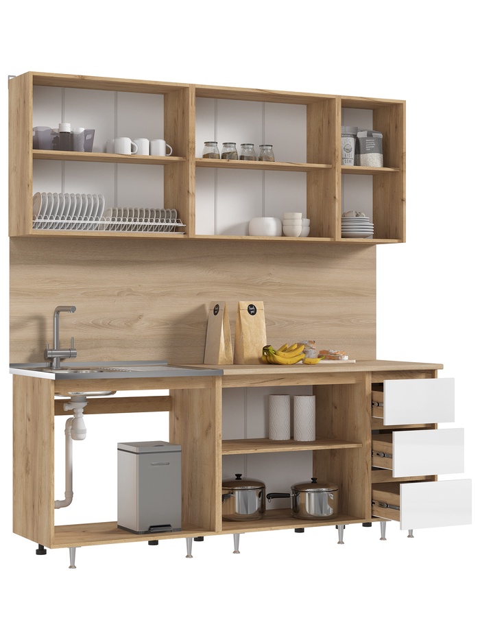 Набор мебели, предназначенный для обустройства кухни. Гарнитур обеспечивает утилитарность кухни, позволяя хранить продукты, посуду и кухонные принадлежности по местам, организует рабочее пространство для приготовления пищи. Поможет поддерживать порядок на кухне и делает процесс приготовления еды более комфортным и приятным.