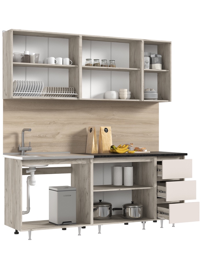 Технические характеристики Кухонный гарнитур 2000 Челси, Кашемир/Крафт серый