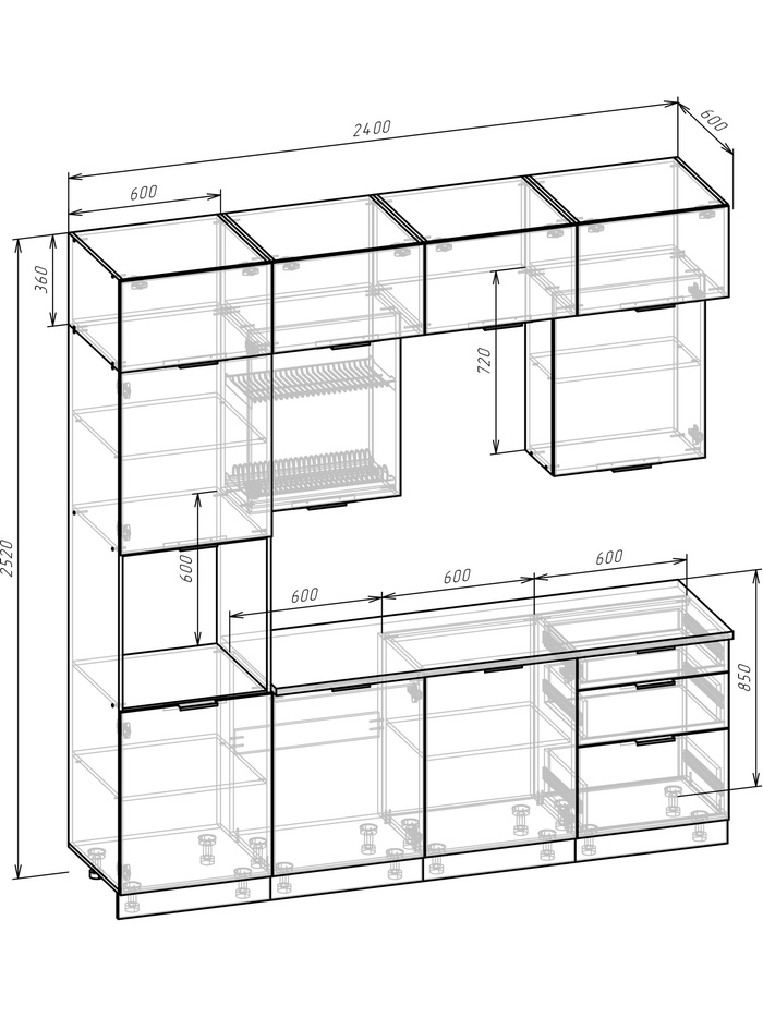 | Высота кухни, мм | 2520 |