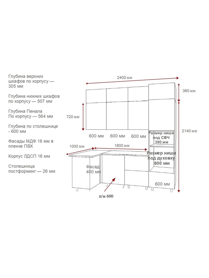 | Высота кухни, мм | 2500 |