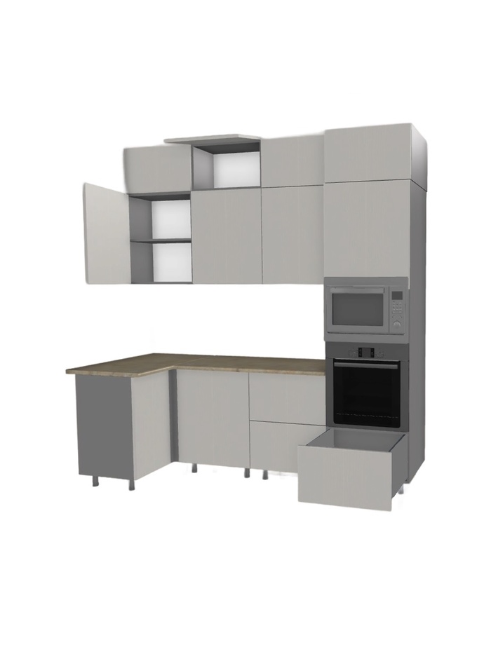 Практичное решение для организации кухонного пространства. Продумнная компоновка и модульная система позволяют адаптировать гарнитур под особенности помещения и индивидуальные задачи.