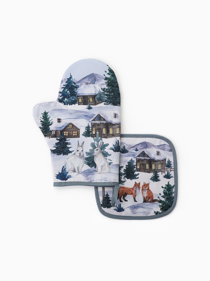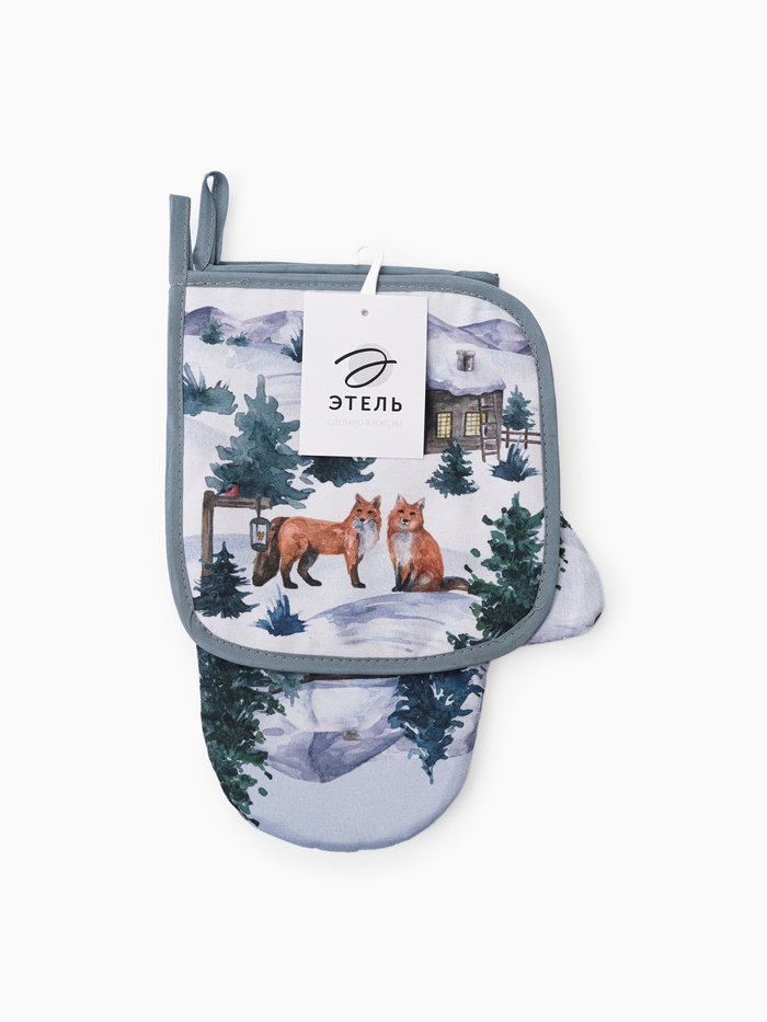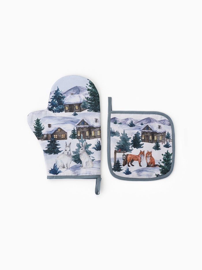 Кухонный набор «Этель» Forest animals: варежка-прихватка 20×27 см, прихватка 19×19 см