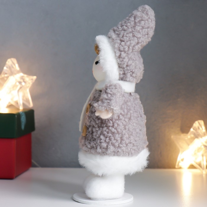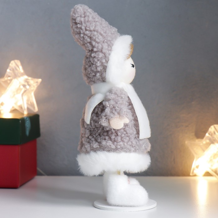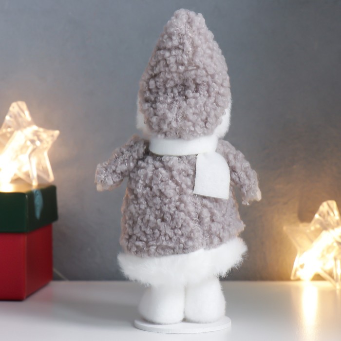 Кукла интерьерная текстильная «Девочка в кучерявой серой шубке и валенках», 15 см