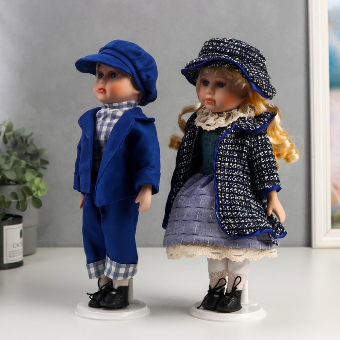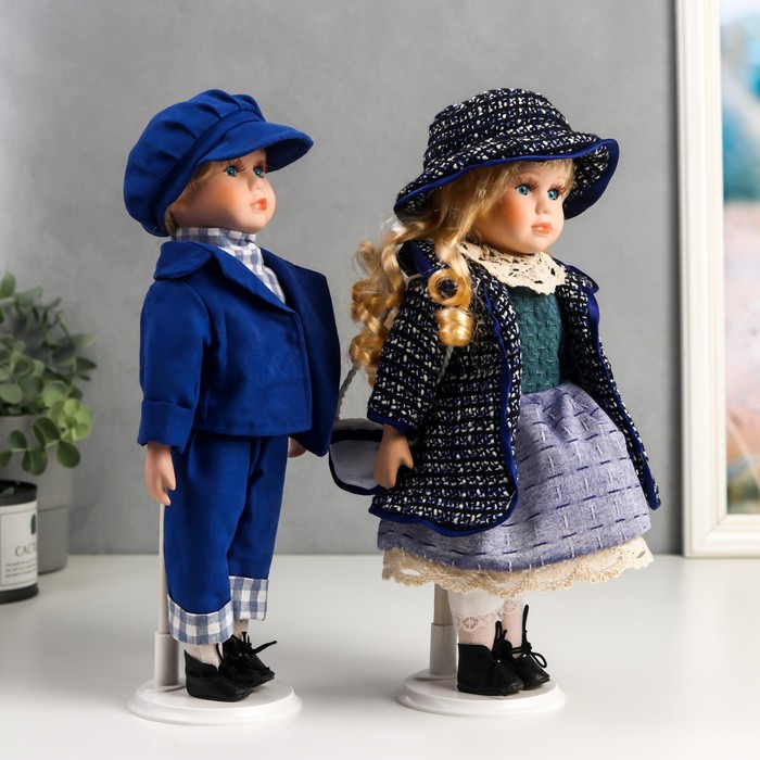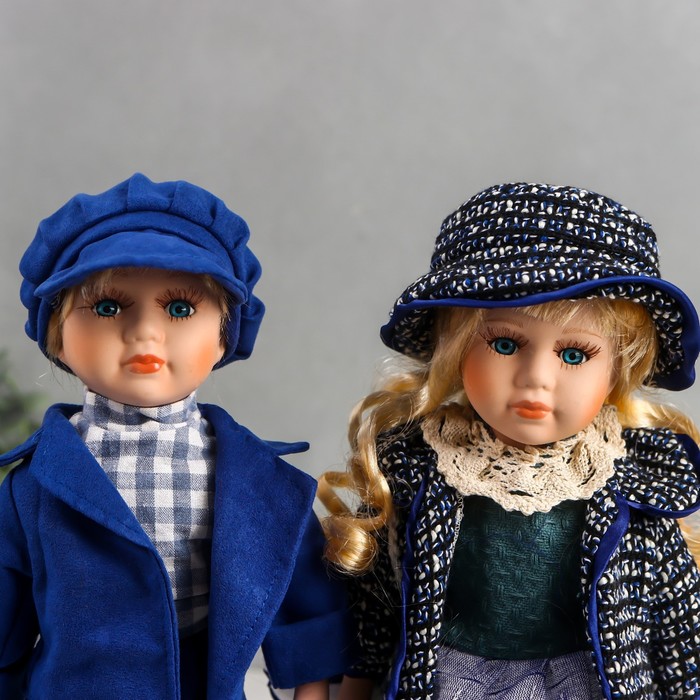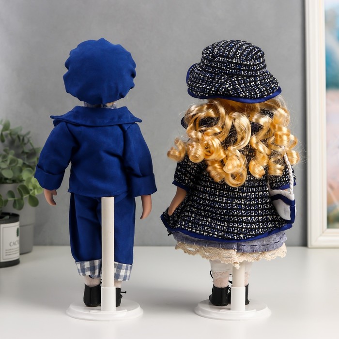 Кукла коллекционная парочка набор 2 шт "Света и Слава в голубых нарядах с джинсой" 30 см