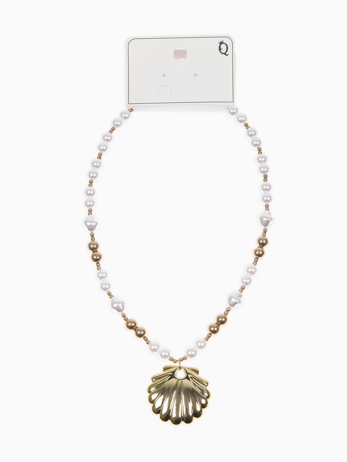 Колье на жемчужных бусах «Ракушка», L=55 см, белый в золоте